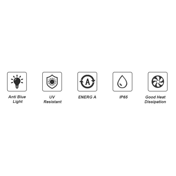 IP65 Waterproof: the light is designed for outdoor use. It is safe to use and provides a longer life in all weather conditions.